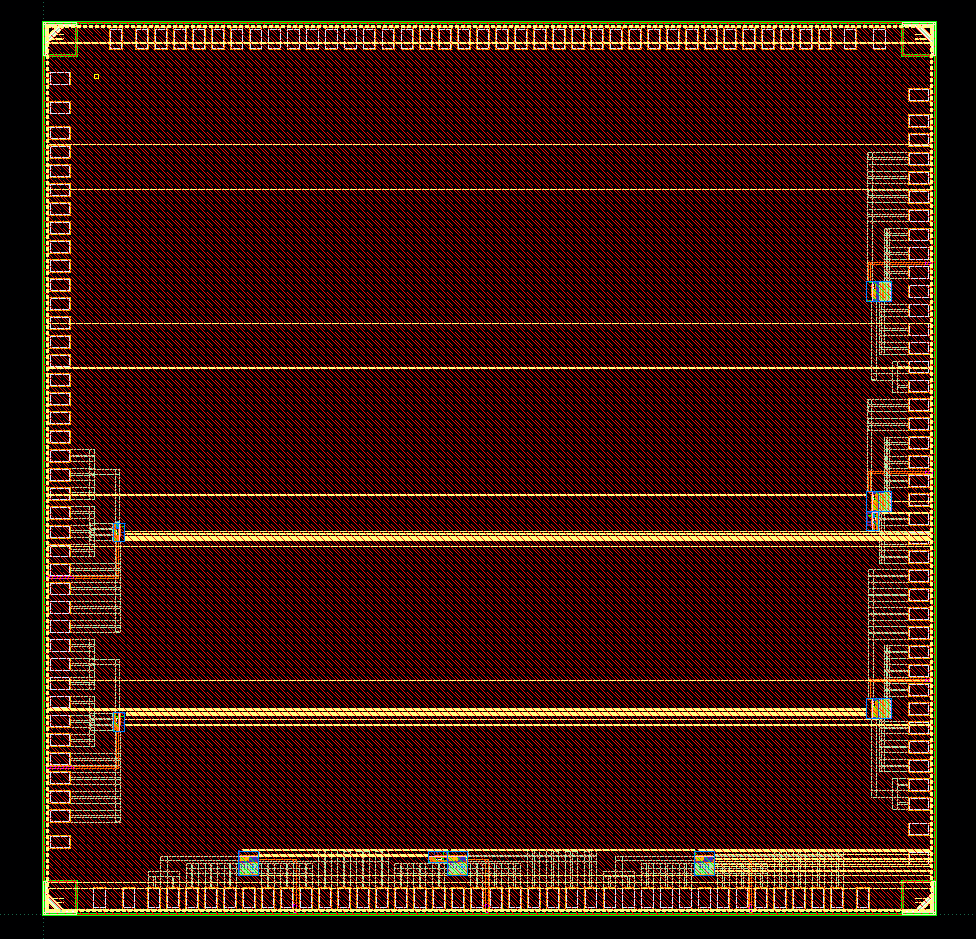 IP명 LDO regulator 설계 Category Analog Application 무선전력전송 실설계면적 1㎛ X 1㎛ 공급 전압 1.8V IP유형 Hard IP 동작속도 1kHz 검증단계 Silicon 참여공정 SF028-2501 IP개요 무선 전력 전송을 위한 고성능 LDO regulator 설계 - 레이아웃 사진 -
