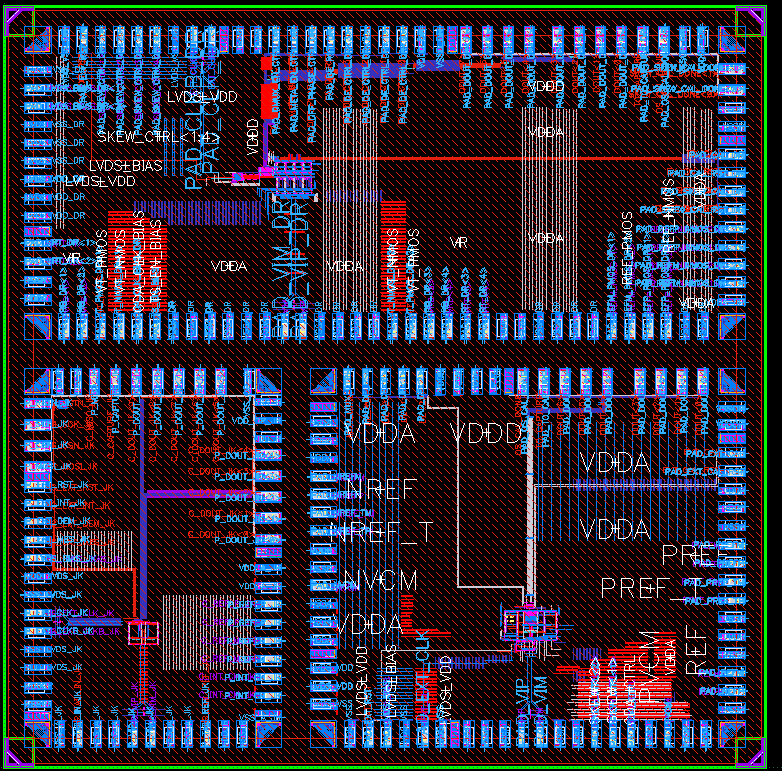| IP개요 | 본 설계는 채널 간 부정합 보정 엔진(Calibration Engine)이 내장된 고속 저전력 Time-Interleaved (TI) Analog-to-Digital Converter (ADC)에 관한 것으로, 다채널 구조를 사용하는 TI ADC의 근본적인 한계인 채널 간 불일치(offset, gain, time-skew mismatch)로 인한 성능 저하를 최소화하고, 고속 동작과 저전력을 동시에 달성하는 것을 주요 설계 목표로 한다. 이를 위하여, 각 TI 채널에 사용되는 sub-ADC로는 전력 효율이 개선된 two-step 구조의 SAR-Flash 하이브리드 ADC를 제안하였으며, 해당 구조는 SAR 방식의 에너지 효율성과 Flash 구조의 속도 특성을 융합하여 고속 저전력 특성을 동시에 확보할 수 있도록 설계되었다. | ||