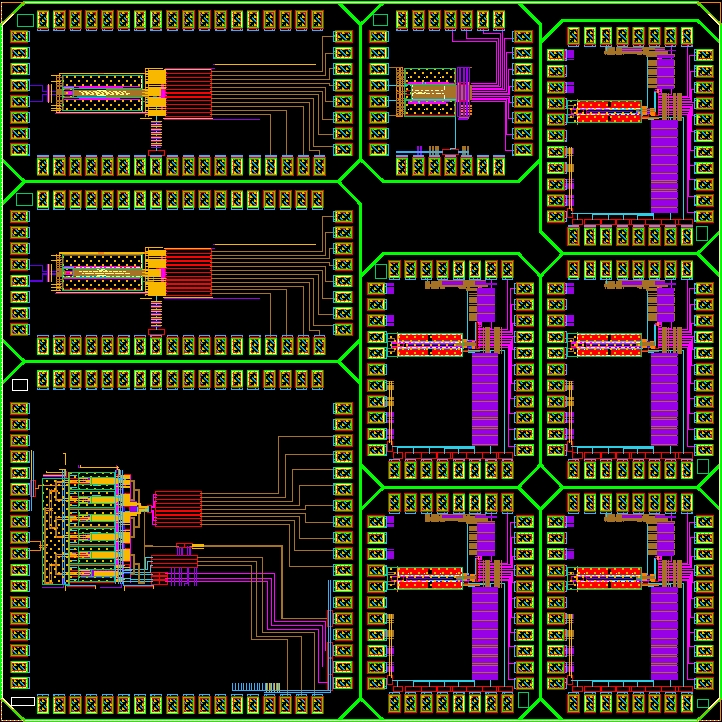 | IP개요 | 본 IP는 하이브리드 위상 보간법을 이용하여 서브-샘플링 기반의 2.4GHz 구조의 fractional-N 위상 고정 루프를 제안하였다. 하이브리드 위상 보간법은 디지털-시간 변환기의 영역을 감소함으로써, 전체적인 위상 고정 루프의 선형성을 향상하였다. 하이브리드 위상 보간법은 커패시터와 능동 소자로 구성 되어있다. 커패시터 위상 보간법은 수동 소자를 사용하여 전력소비를 하지 않는 장점이 있지만, 미스매치 및 기생 요소에 취약하다. 반면 능동 소자위상 보간법은 정확도가 높은 장점이 있지만, 전력소모가 매우 크다는 단점이 있다. 그리하여 상대적으로 정확도가 중요한 부분은 능동 소자 위상 보간법을 사용하였고, 나머지 부분은 커패시터 위상 보간법을 이용하여 서브-샘플링 fractional-N 위상 고정 루프를 설계하였다. |