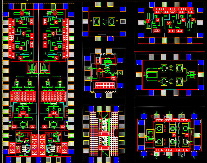 IP명 60 GHz MIMO OOK 송수신기 및 test pattern Category RF Application 무선 통신 실설계면적 1.93㎛ X 2.43㎛ 공급 전압 1V IP유형 Hard IP 동작속도 60GHz 검증단계 Silicon 참여공정 HM-2001 IP개요 60 GHz MIMO OOK 송수신기 및 각 블록 테스트를 위한 test pattern - 레이아웃 사진 -